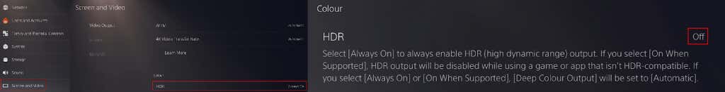 If it seems like your PS5 screen flickering started after you edited HDR settings, you can try changing the settings back, then ensure HDR is disabled on both your console and your TV. Hopefully, this will solve the issue. Here’s how to disable HDR on your PS5: