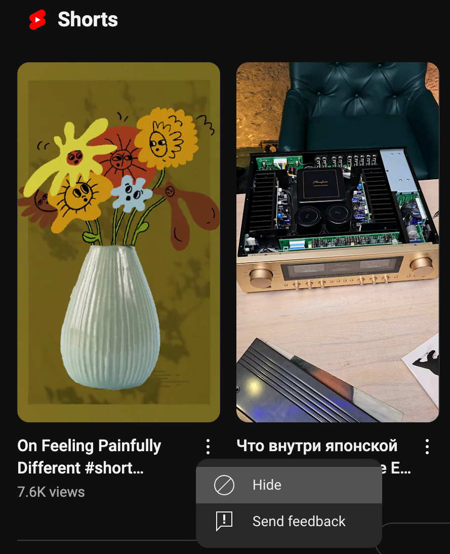 Repeat this for other Shorts you encounter. Over time, YouTube’s algorithm will adjust and show fewer Shorts in your feed.