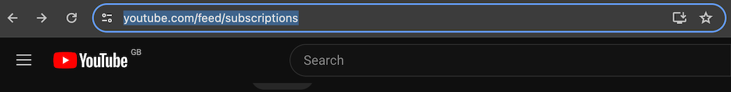 - In your browser’s address bar, replace “youtube.com” with “youtube.com/feed/subscriptions” and hit Enter.