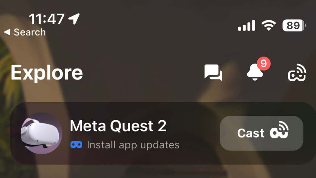 You can also initiate casting from the Meta Quest app. On the Explore page, you’ll see your Quest (if it’s on and paired) and a Cast button.
