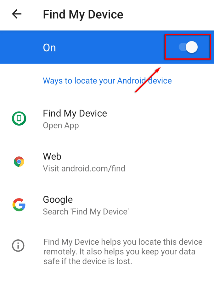 Enable Find My Device: