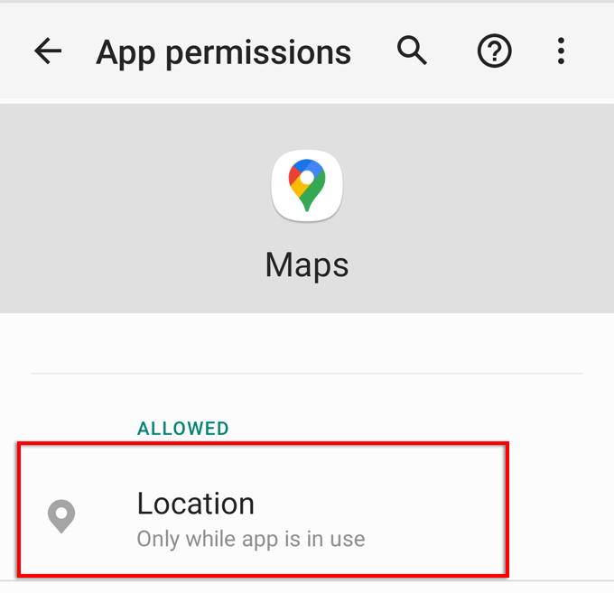 - Select Permissions and ensure that Location is enabled.