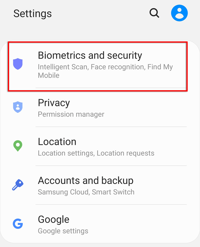 - Open Settings > Biometrics & Security.