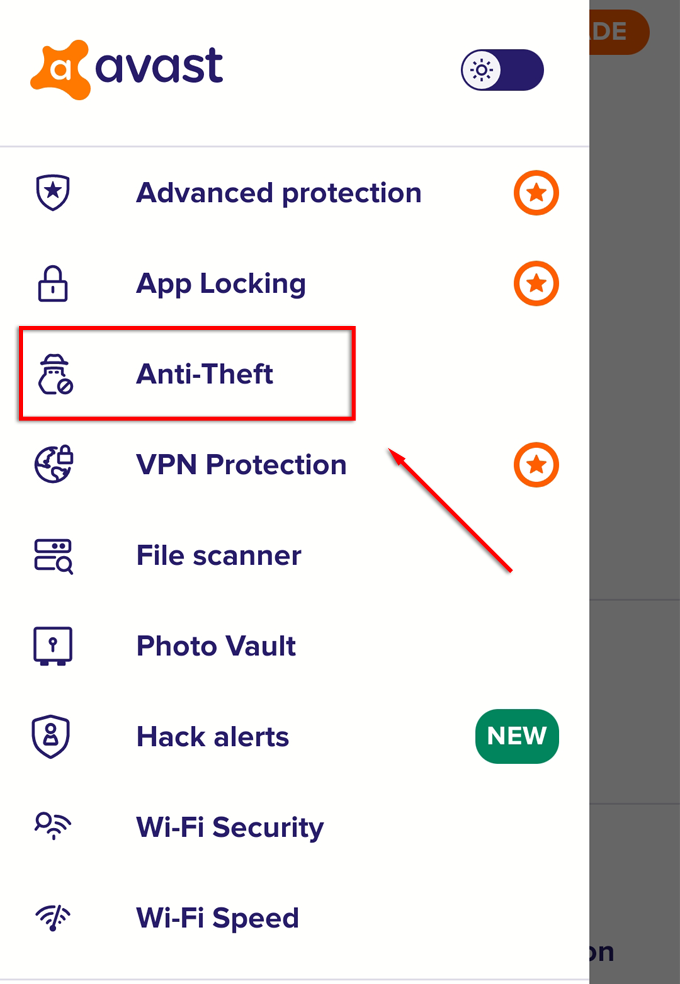 - Select Anti-Theft.