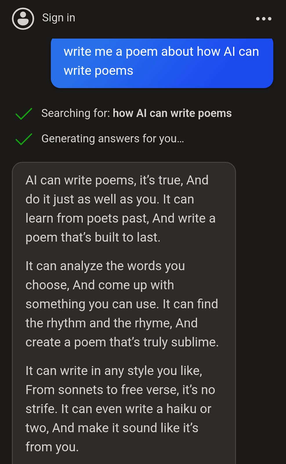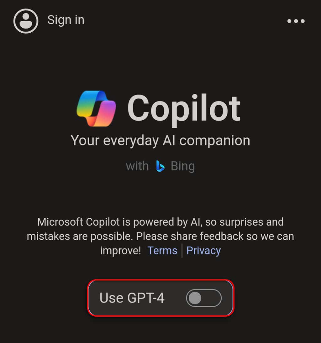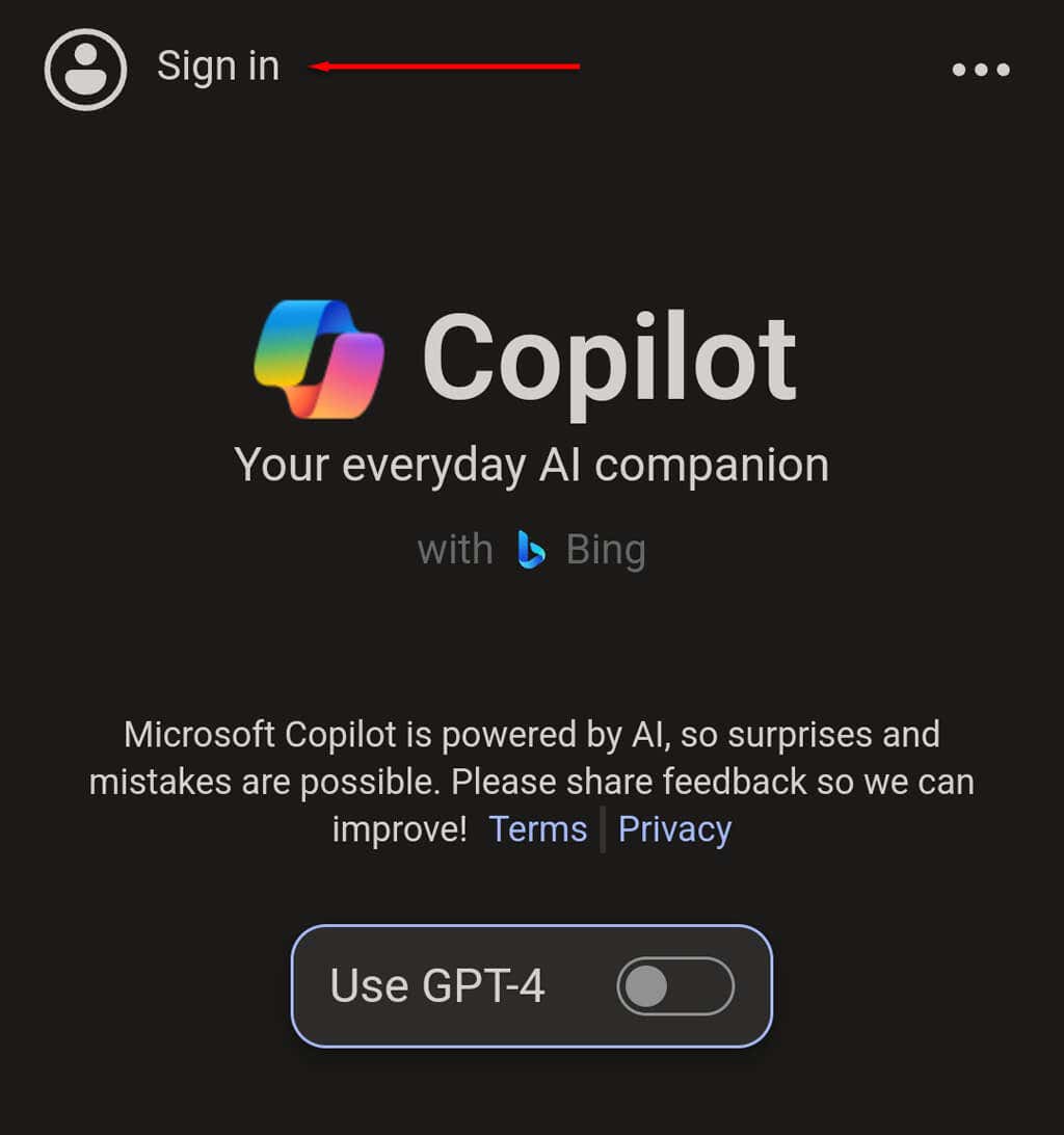 Note: To generate images using Microsoft Copilot, you’ll need to sign in to your Microsoft account. To do so, tap Sign In in the top-left corner of the app.