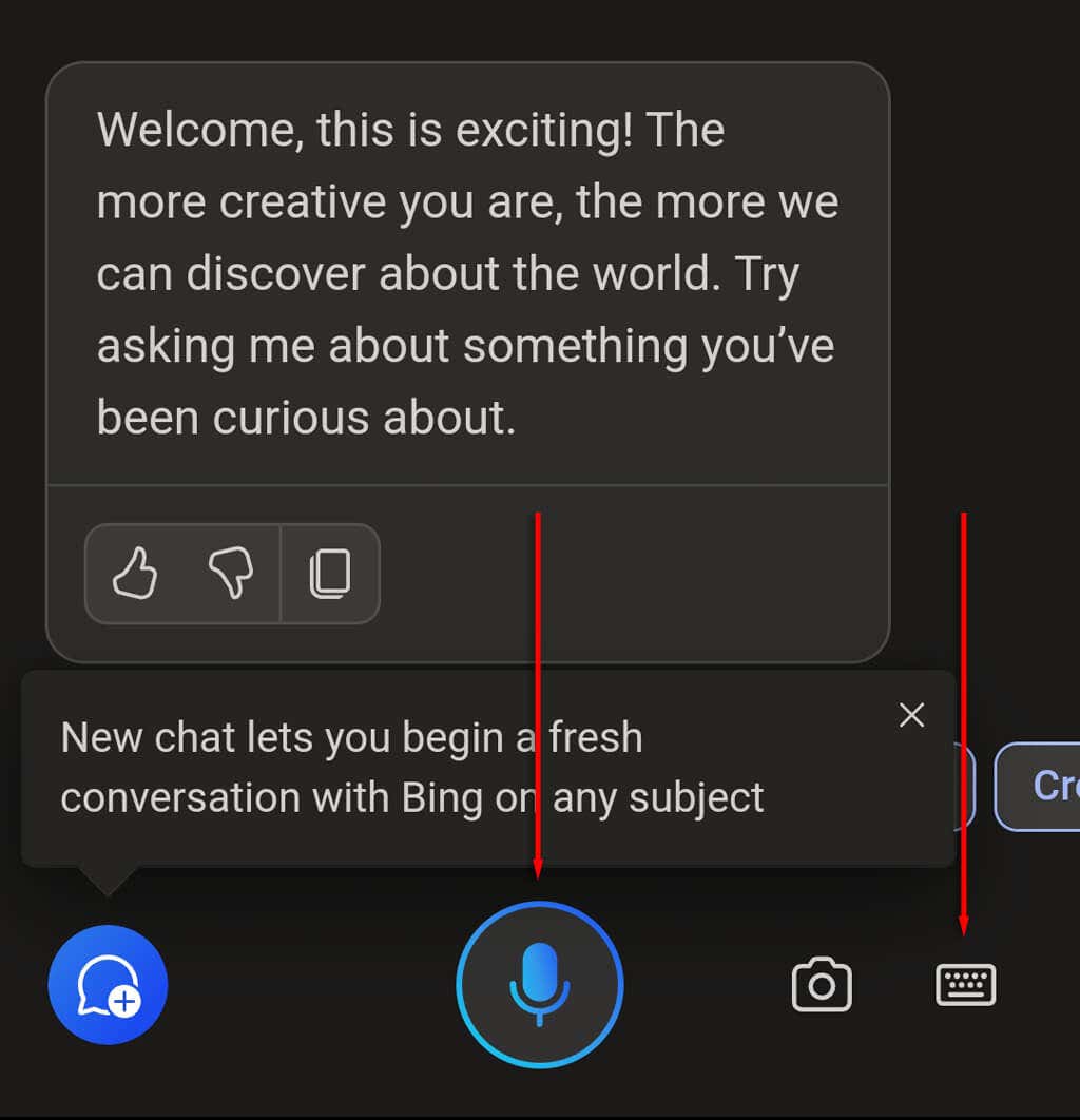 - You can ask a question or give Copilot a task to perform by typing or speaking. For voice input, simply tap the microphone icon and begin speaking. If you’d rather type, press the keyboard icon in the bottom-right corner of the screen.