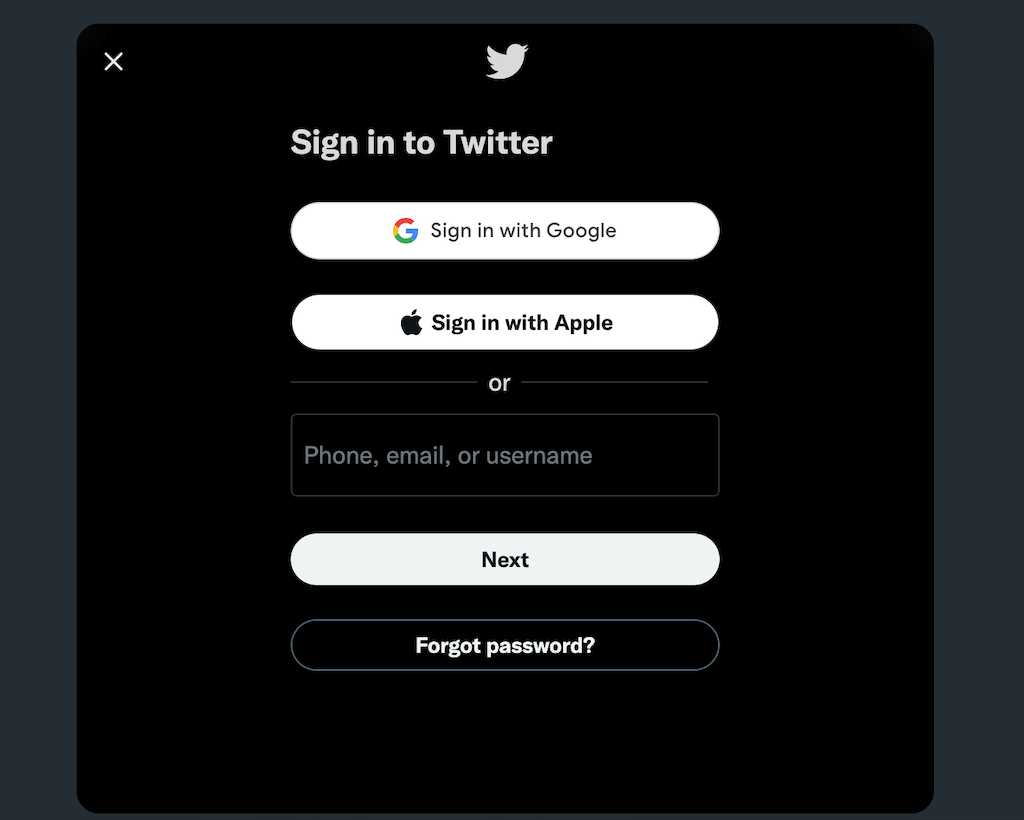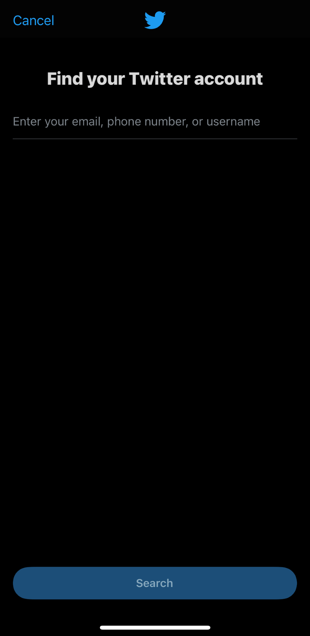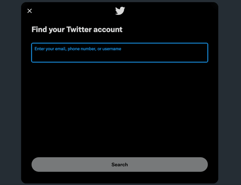 - In the menu that appears, type in your Twitter username, your phone number, or your email address, then select Search.