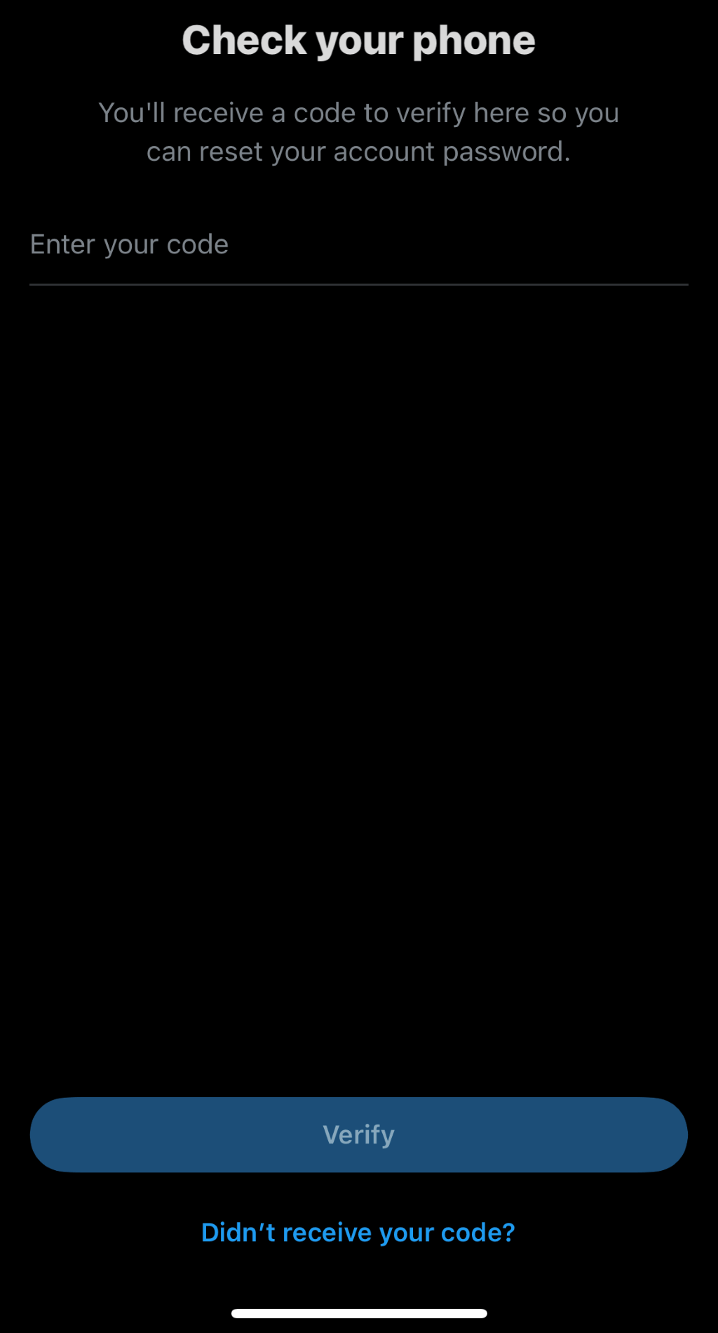 - If you have an account associated with Twitter, you can choose to receive a confirmation code through email or text. Select one of these options and tap Next.