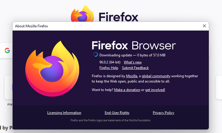 - You’ll see a pop-up window. If a new update is available, Firefox will automatically start downloading the update.