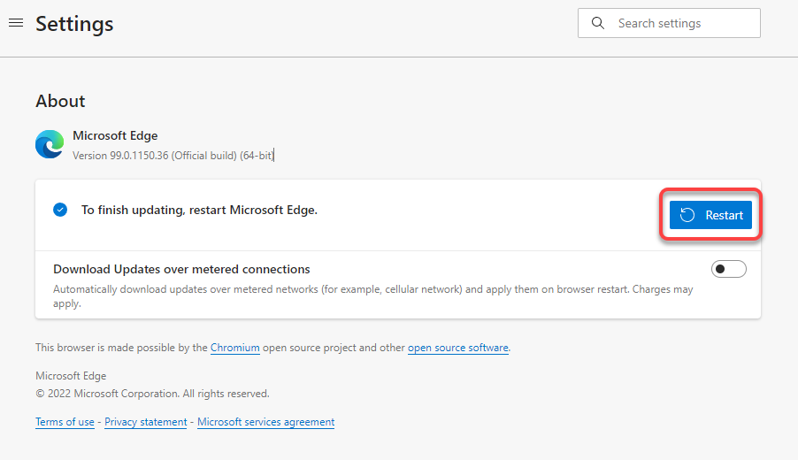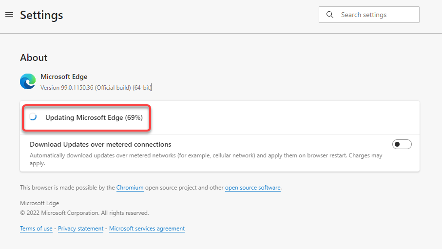 - Edge will automatically check for software updates, and start downloading them if they’re available.