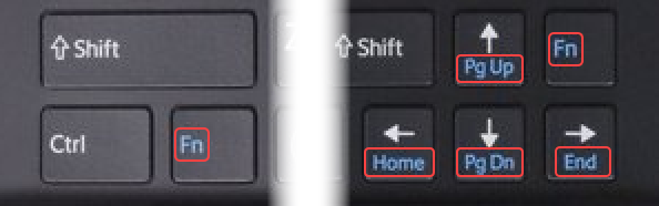 We may also see keys with secondary actions printed on them in a different color. Using the Fn key with those keys will perform the second function.