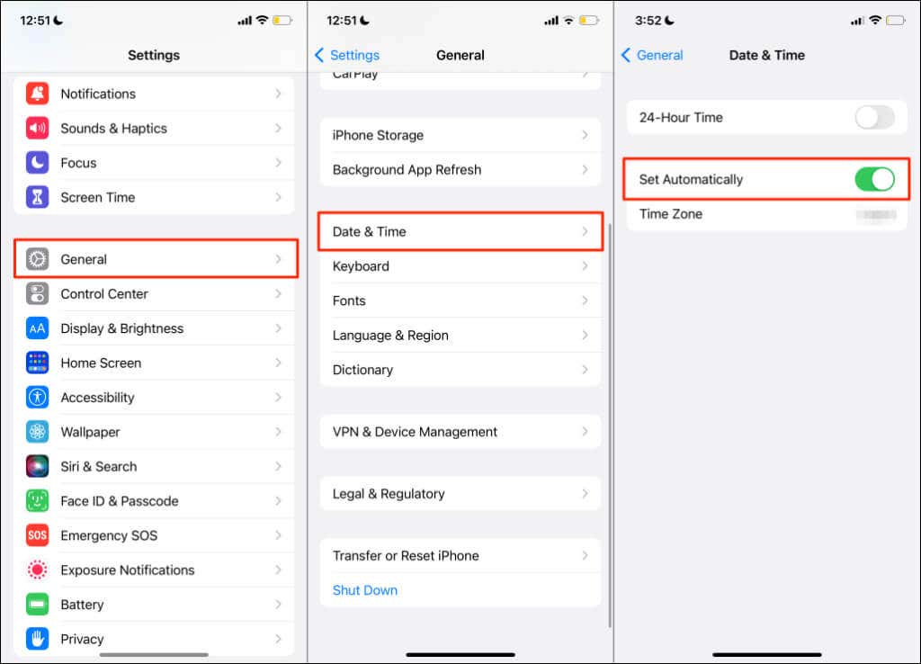 For iOS devices, go to Settings > General > Date & Time and turn on Set Automatically.