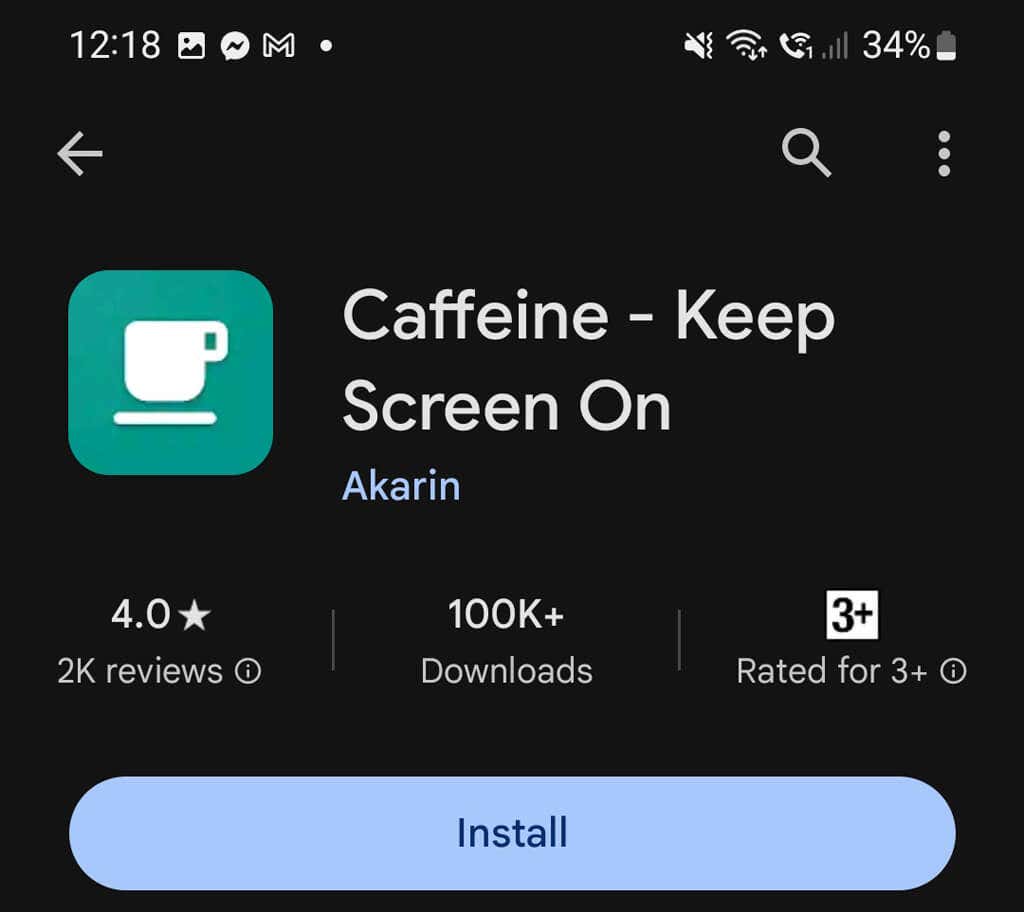 - Open the Google Play Store and search for “Caffeine.”