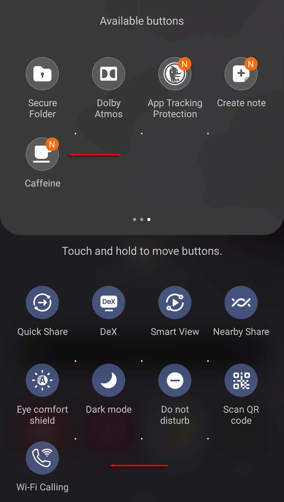 - Drag the Caffeine icon into the Quick Settings menu.