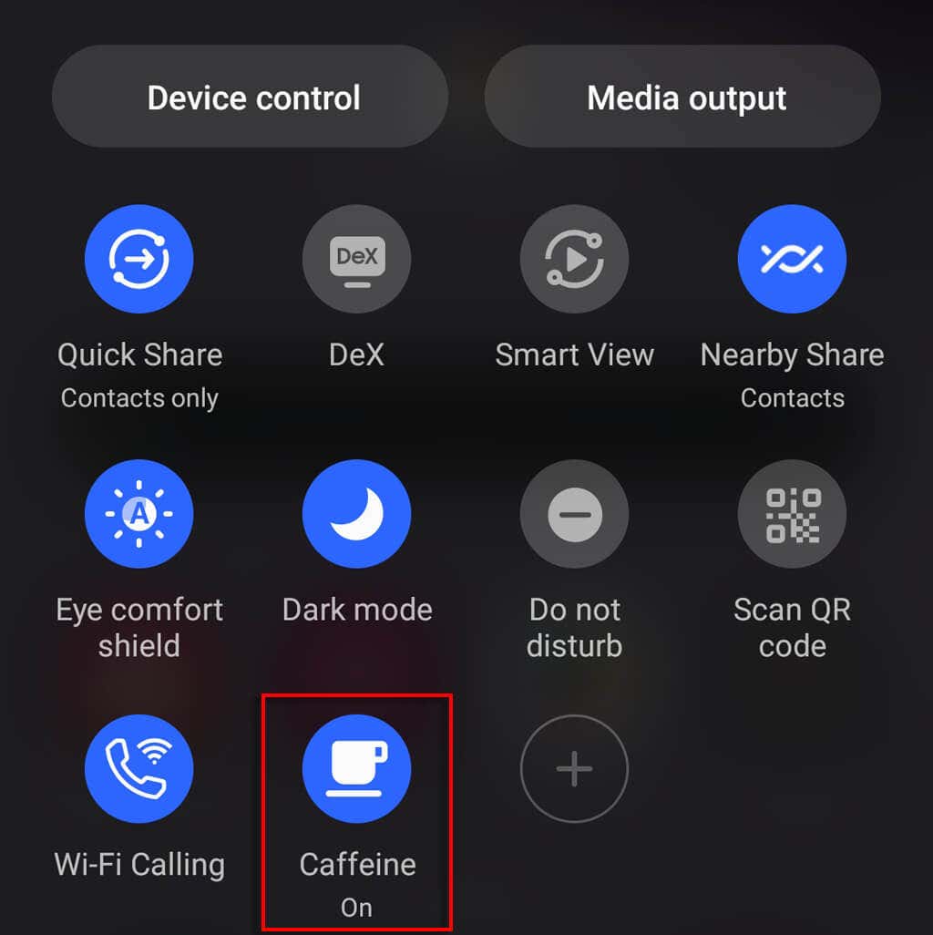 - Now, whenever you want your phone screen to stay on, simply swipe down to access the notification panel, then enable Caffeine.