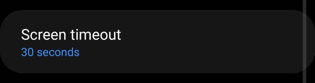 Note: Some Android devices provide a Never option, ensuring that your phone screen will never automatically turn off. However, other Android models including Samsung smartphones do not provide this option.