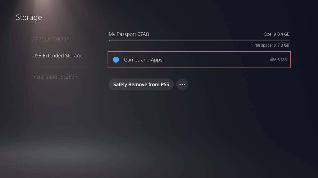 Additionally, you can uninstall games from the extended drive through the PS5’s Storage management panel, but the process is somewhat different. Begin by connecting the storage device to a SuperSpeed USB port on your PS5—the USB-C port on the front or one of the two USB-A ports on the back. Then: