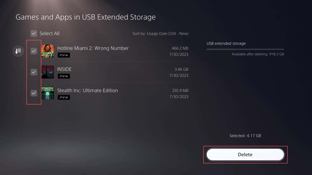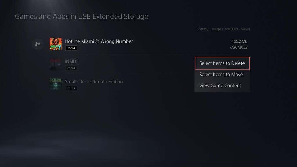 - Highlight any game within the list, press Options, and choose the Select Items to Delete option.