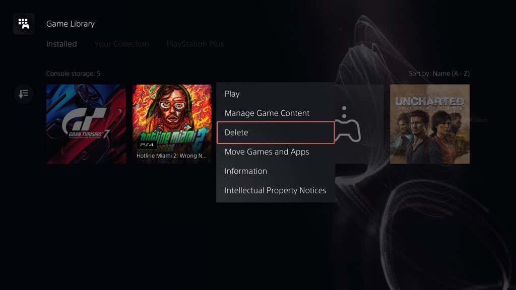 Tip: Select Information on the context menu to check how much space the game occupies on the console’s storage before deleting it.