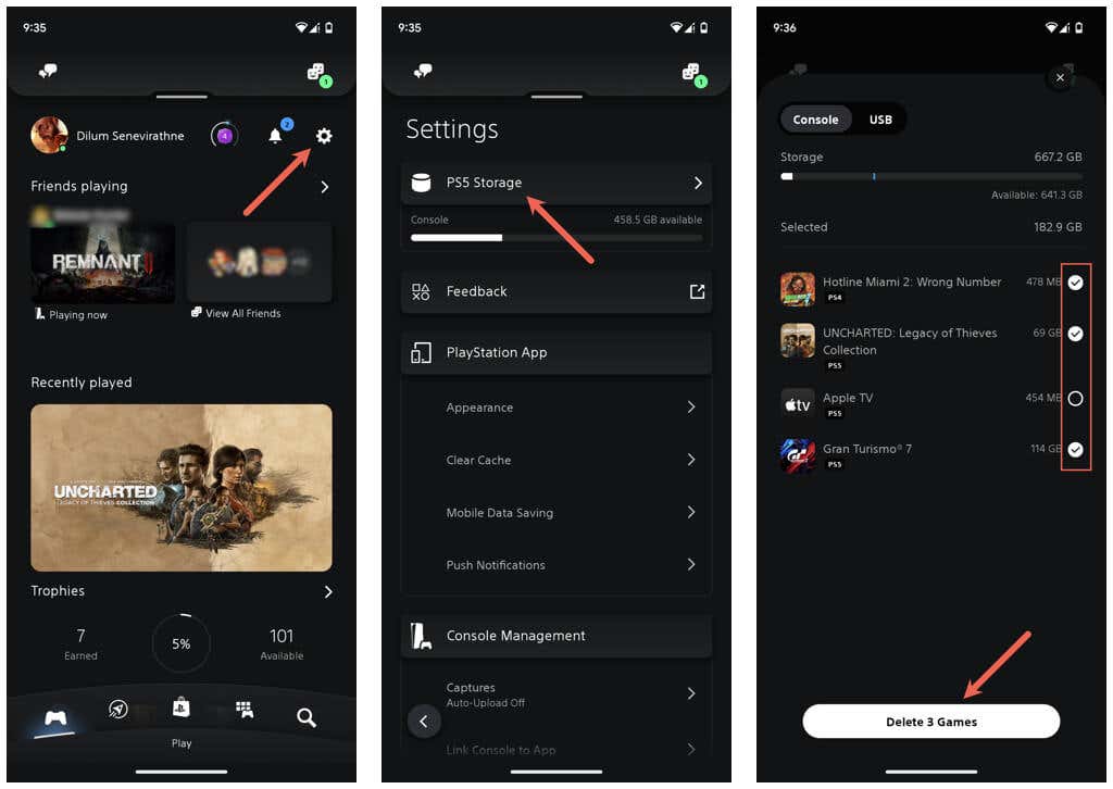 If you’ve set up the PS App to work on your iPhone or Android, you can remotely delete games from your PS5. Like with the Storage management console on your PS5, it lets you delete multiple games at once while allowing you to figure out how much space you get to free up. Just:
