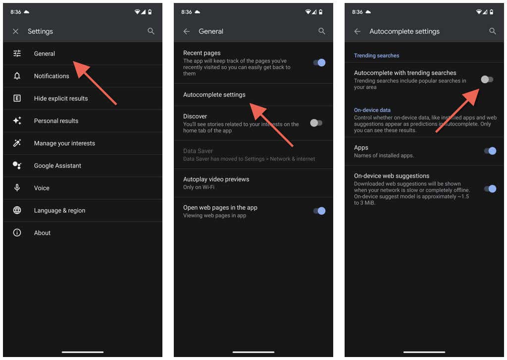 If you use the Google App on an Android, iPhone, or iPad, you can disable Google trending searches by diving into its Settings screen. The procedure varies among the platforms.
