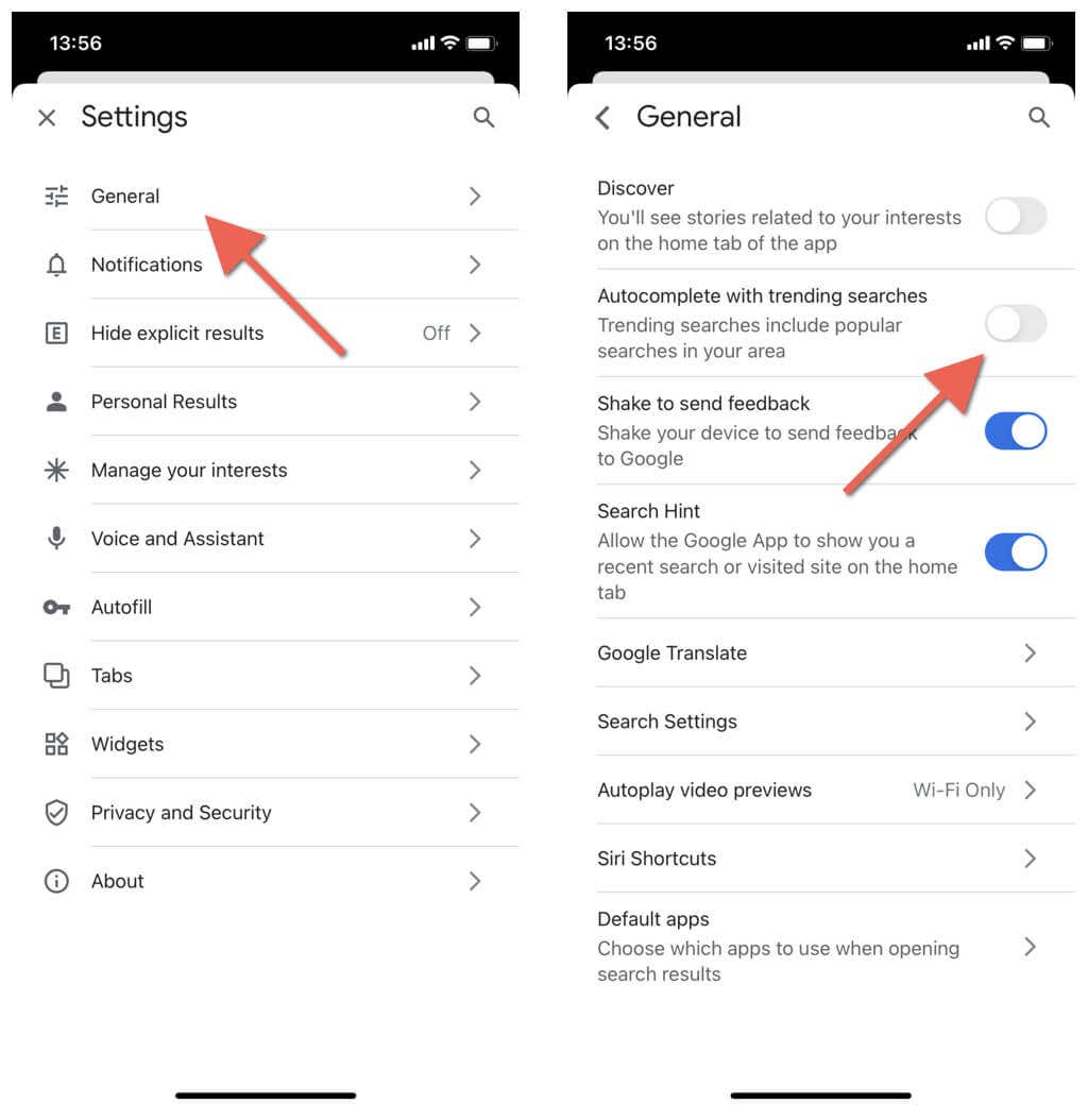 Disable Trending Searches in Google App for Apple iOS and iPad