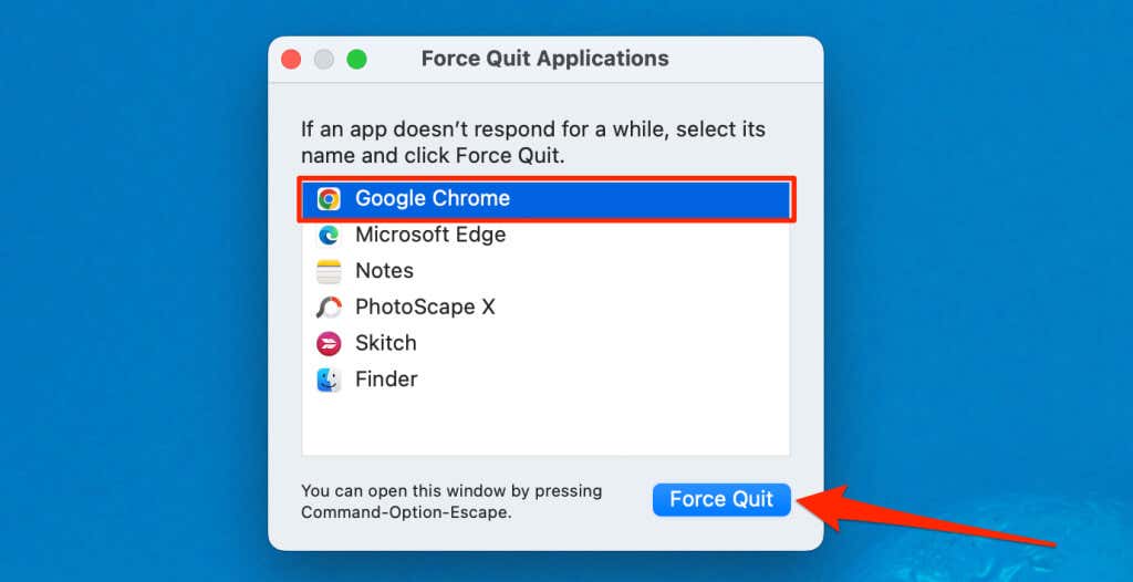 If you use a Mac, press Command + Option + Escape, select Google Chrome, and select Force Quit.