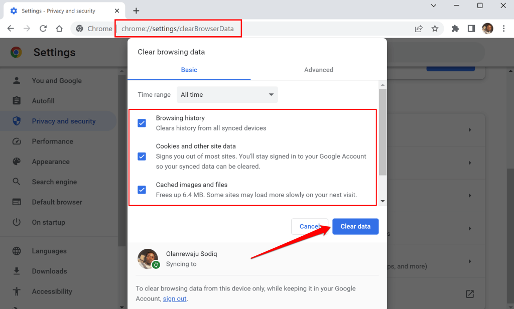 - Paste chrome://settings/clearBrowserData in Chrome’s address bar and press Enter or Return on your keyboard.