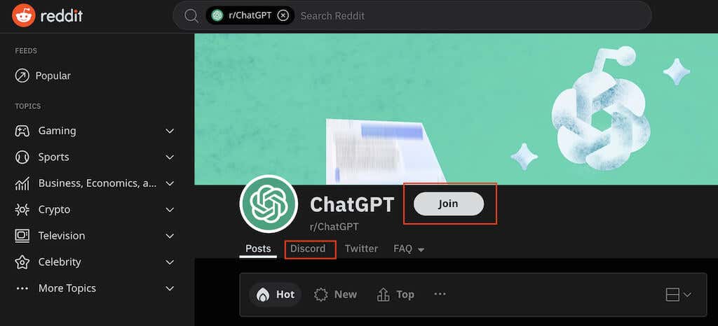 - Join the server at https://www.reddit.com/r/ChatGPT.