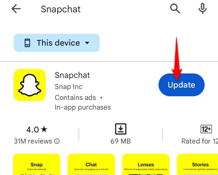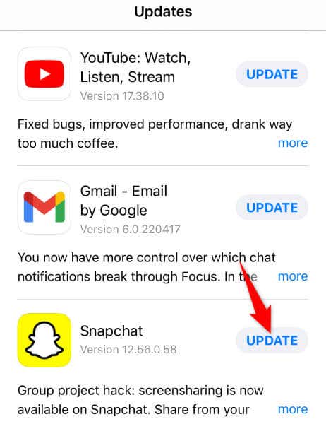 One way to fix many issues with your app is to update your app. Doing so brings various bug fixes that patch the issues with your app. This can resolve your notification problem in Snapchat.
