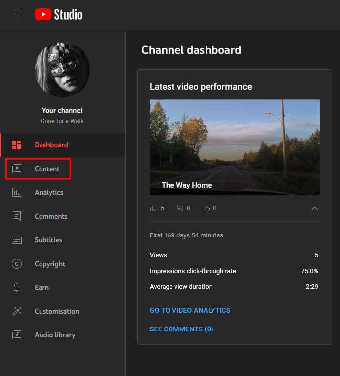 - Go to YouTube Studio. You can do it by clicking on your YouTube profile image, or from the direct link.