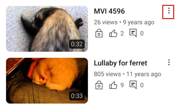 - Find a video you want to download and tap the three dots next to it.