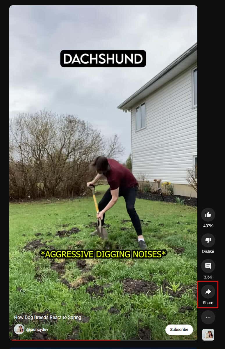 - You’ll have to open YouTube in a separate browser tab and access the short you want to download then click on the Share button.