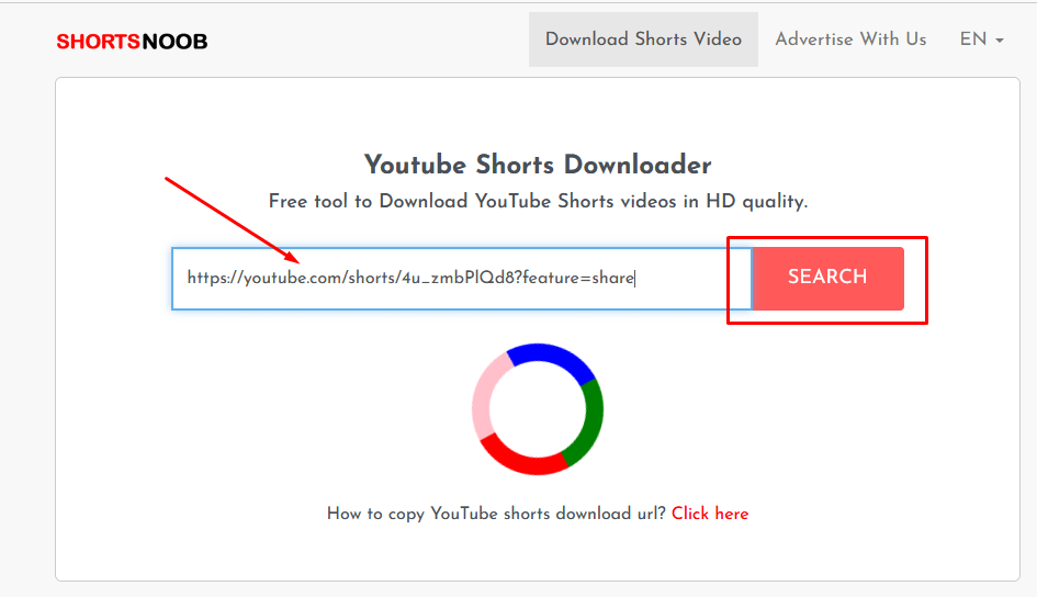 - Now go back to the Shortsnoob tab and paste the URL into the search bar. Press the Search button.