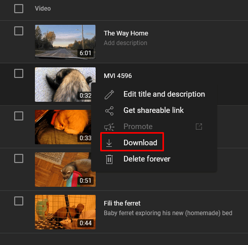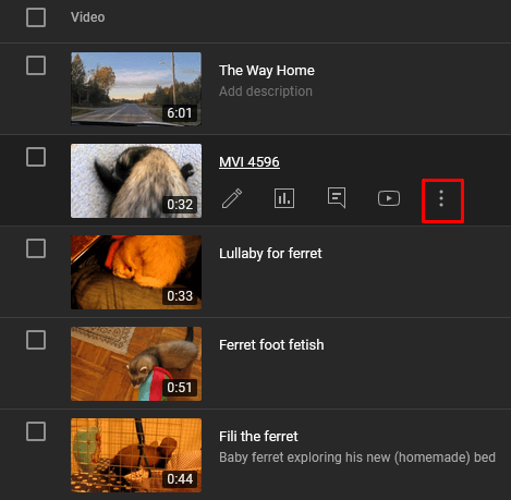 - Place your cursor over the video you want to download and click on the three-dots menu.
