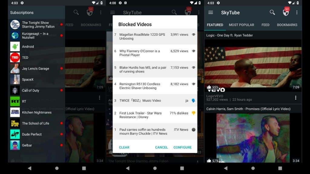 Like NewPipe, SkyTube doesn’t rely on any Google APIs or code, so you can use it without a Google account, and, of course, there are no ads at all.