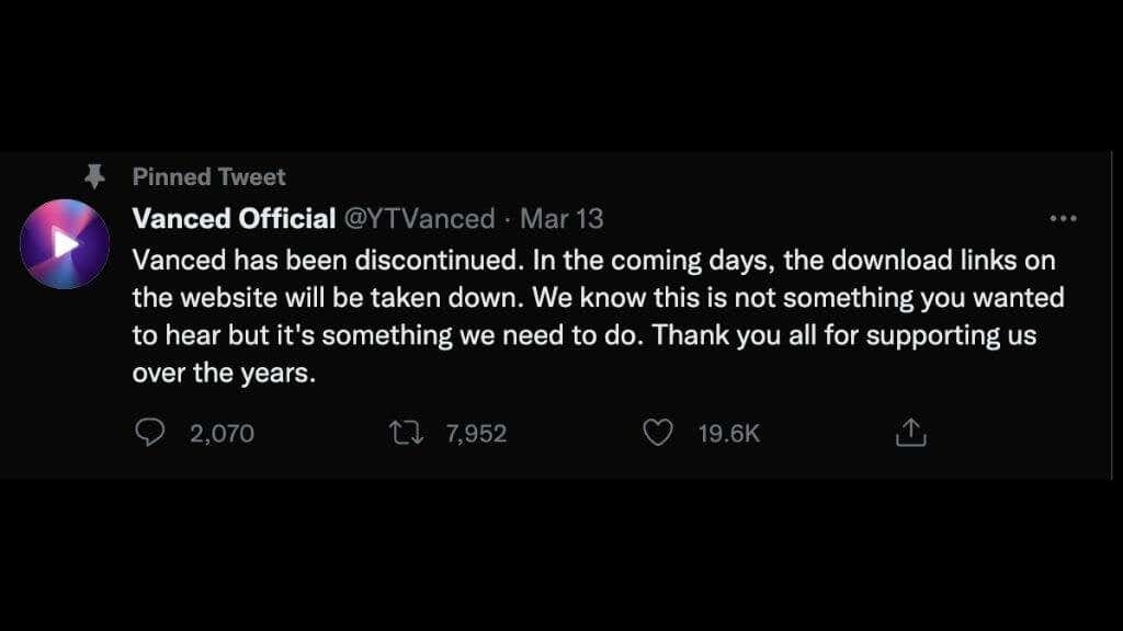 While you can still download the APK file and use the app, it’s no longer maintained. This means that it will stop working at some point in the future when YouTube changes things, and there’s no one to update the software. So, we strongly recommend using one of the other apps discussed above.