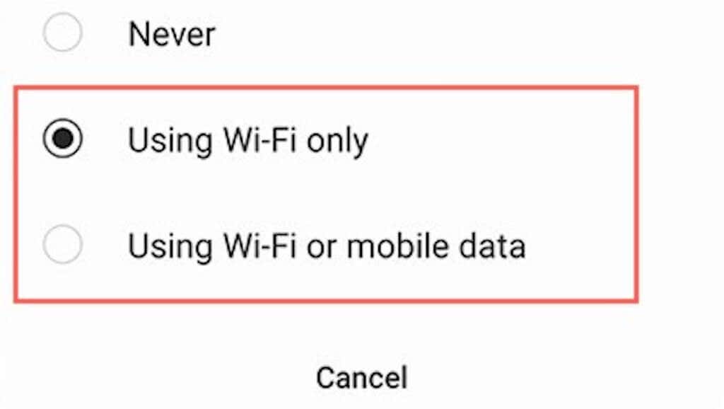 4. Select Over any network or Over Wi-Fi only. Pick the latter option if you don’t want to avoid excessive cellular data usage.