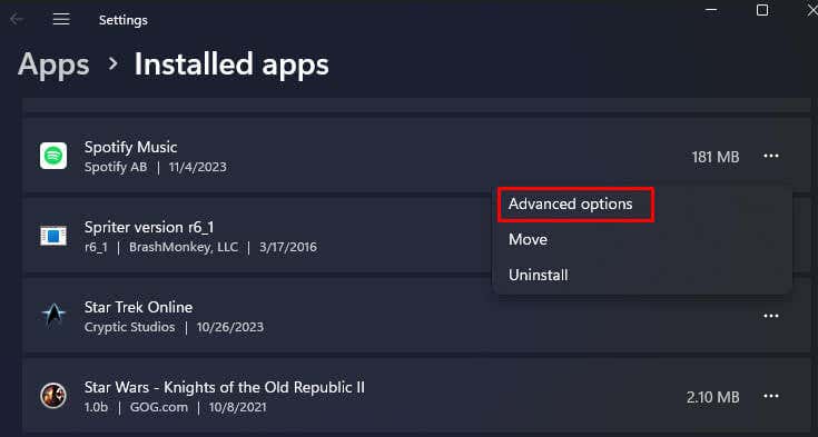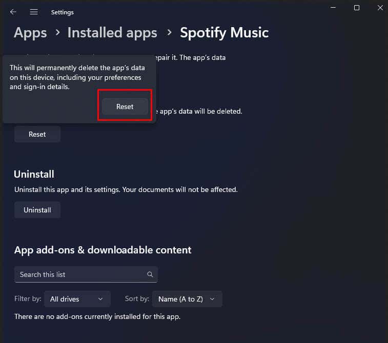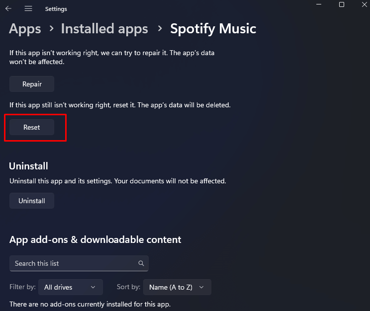 4. Reset the Spotify App on Windows