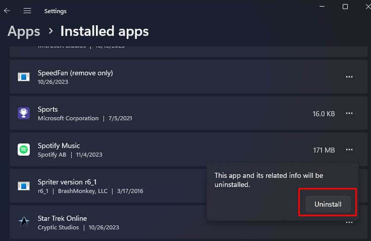 - Find and select Spotify from the list of installed apps.
