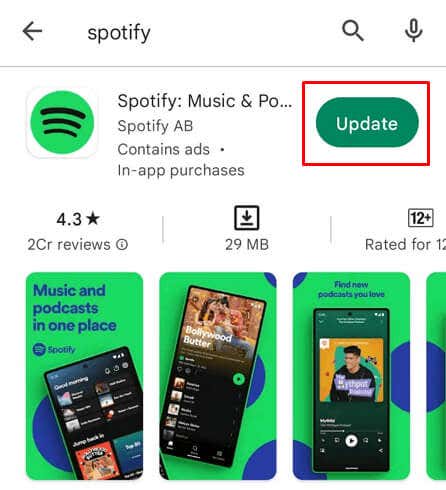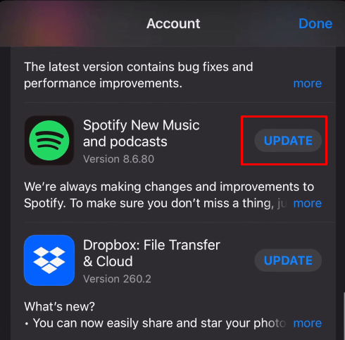 - Tap Update next to Spotify.
