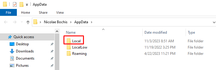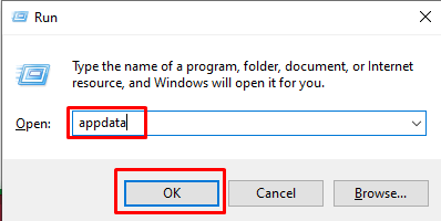 - Type appdata and hit Enter or click the OK button. This will open the appdata folder.