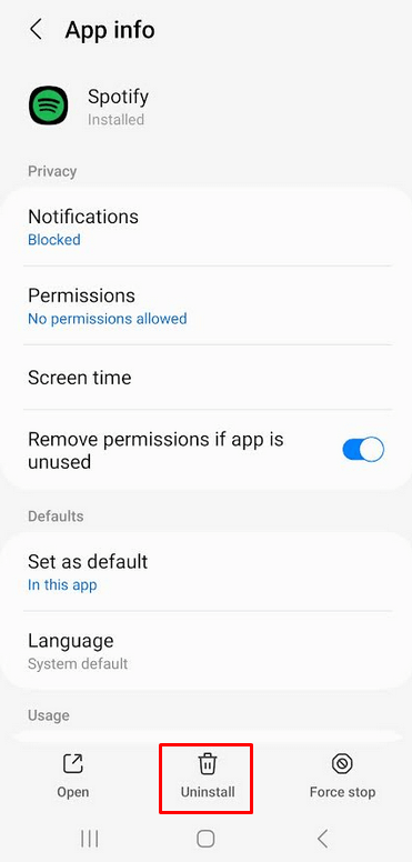Reinstall Spotify on Android