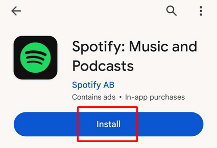 - Go to the Google Play Store, find Spotify, and tap the green Install button.