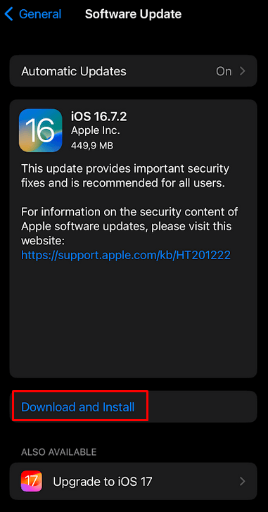 - Tap Download and Install.