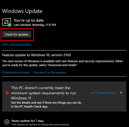 - Select Check for Updates.