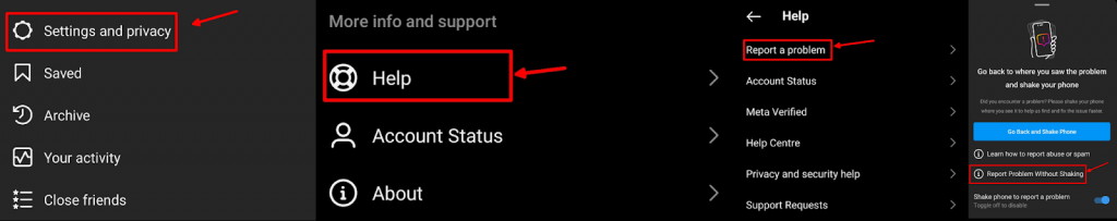 - You can either go back to where the problem occurred and then shake your phone to report the issue, or (and this might be easier), tap Report Problem Without Shaking.