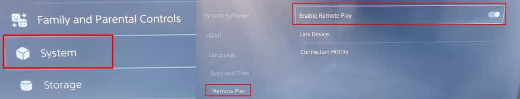- On your PS5, go back into Settings > System > Remote Play.