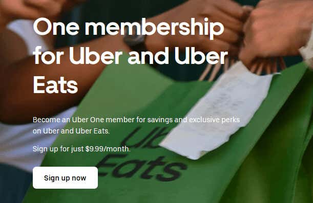 - Go to the Uber One web page and click on the Sign up now button.