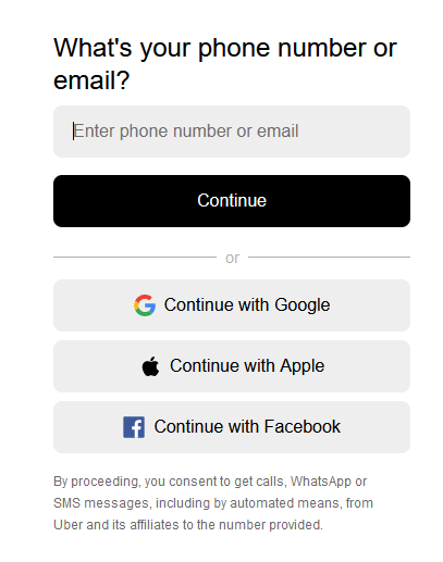 - Uber will send you a code to your phone or email you provided. Enter it in a designated box.